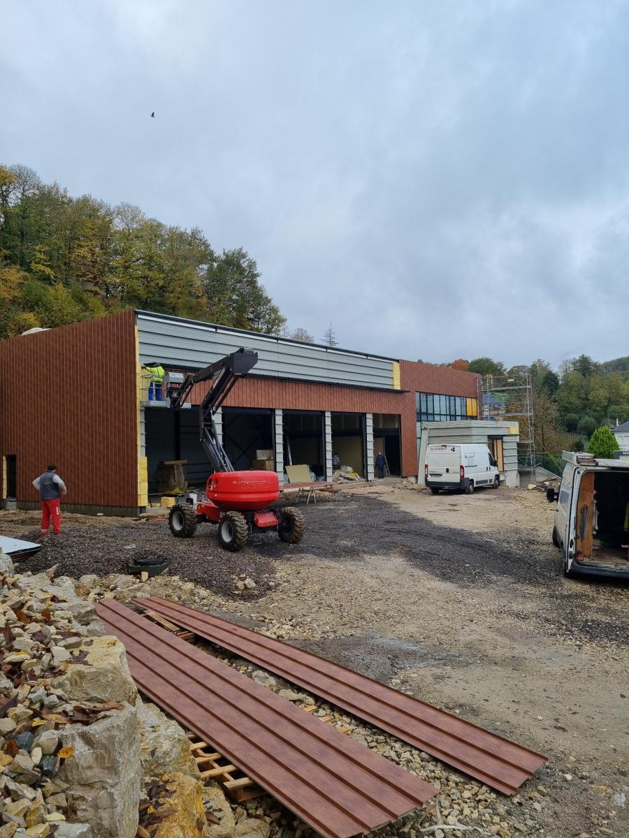 Les travaux du Centre de Secours et d'Incendie de Beaulieu-sur-Dordogne ont bien avancé. L'isolation et le bardage métallique sont actuellement en cours.