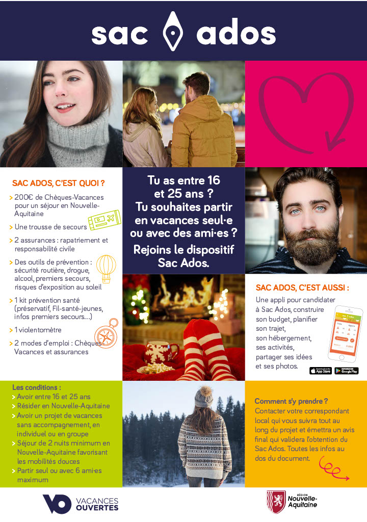 Tu as entre 16 et 25 ans ? Tu souhaites partir seul(e) ou avec tes ami(e)s ? Le dispositif Sac Ados t'accompagne